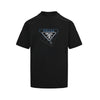 Classic Prada overlapping triangle logo with new rope embroidery elements, high-definition, vivid, and three-dimensional image.