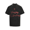 Made of vintage plain knit fabric, with 'lipstick valentines' artwork prints on the front and back, featuring all-over distressed effects.