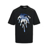 Plain weave cotton T-shirt, made from 260g plain weave cotton fabric with 2x2 matching ribbing, different from ordinary wide fabric weight, retaining the full original hand feel; the structure is very full and the drape is particularly good. The chest features an equestrian knight emblem (EKD) in toothbrush embroidery, combined with splatter print technique. Designed with a round neck to present a fitted silhouette.